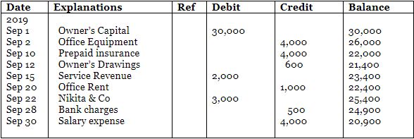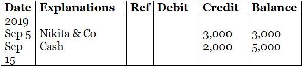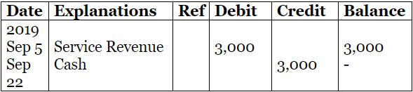 Sep 22:   Received cash from Nikita & Co for service provided on Sep 5