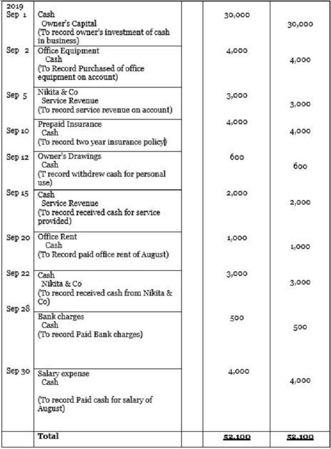 First, we prepare Journal entries for September transactions after that, we will prepare Ledger accounts.