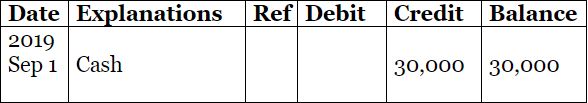 Sep 01:   Tina invested cash $ 30,000 in the business.